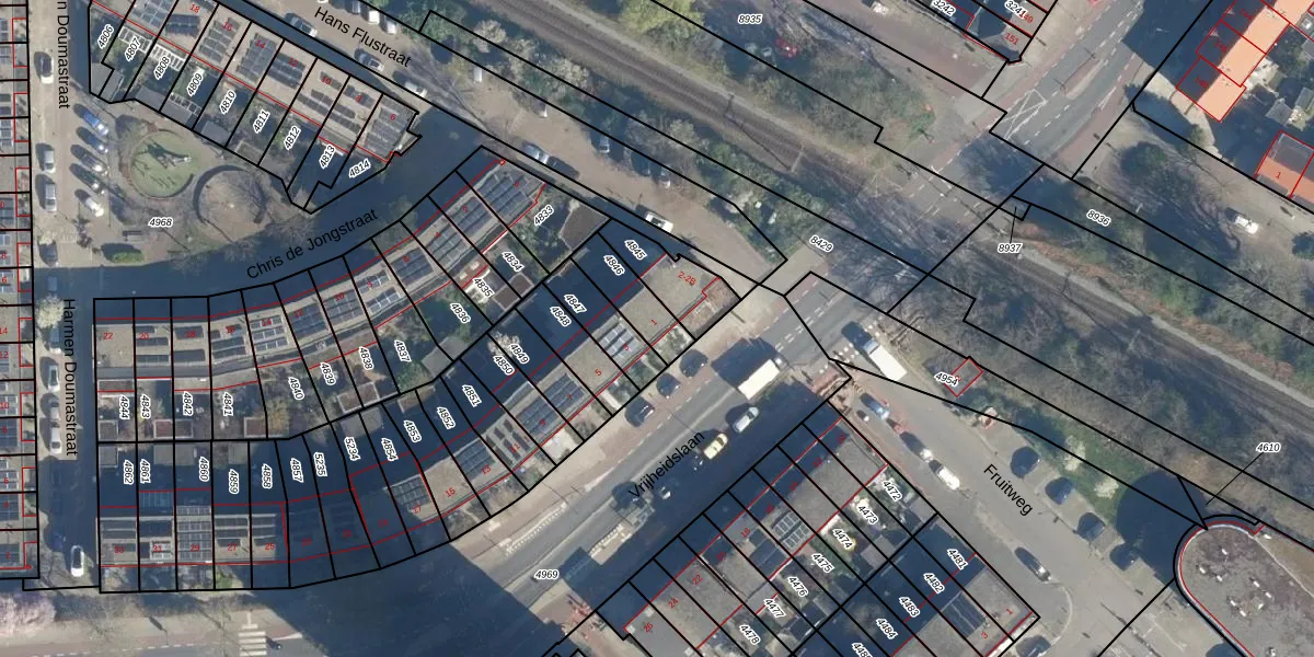 Vrijheidslaan 1 is gelegen op kadastraal perceel LDN01O4846. Deze kadastrale aanduiding is uniek en wordt gebruikt door het Kadaster om eigendomsrechten en andere zakelijke rechten vast te leggen. Het perceel maakt onderdeel uit van de kadastrale gemeente Leiden.