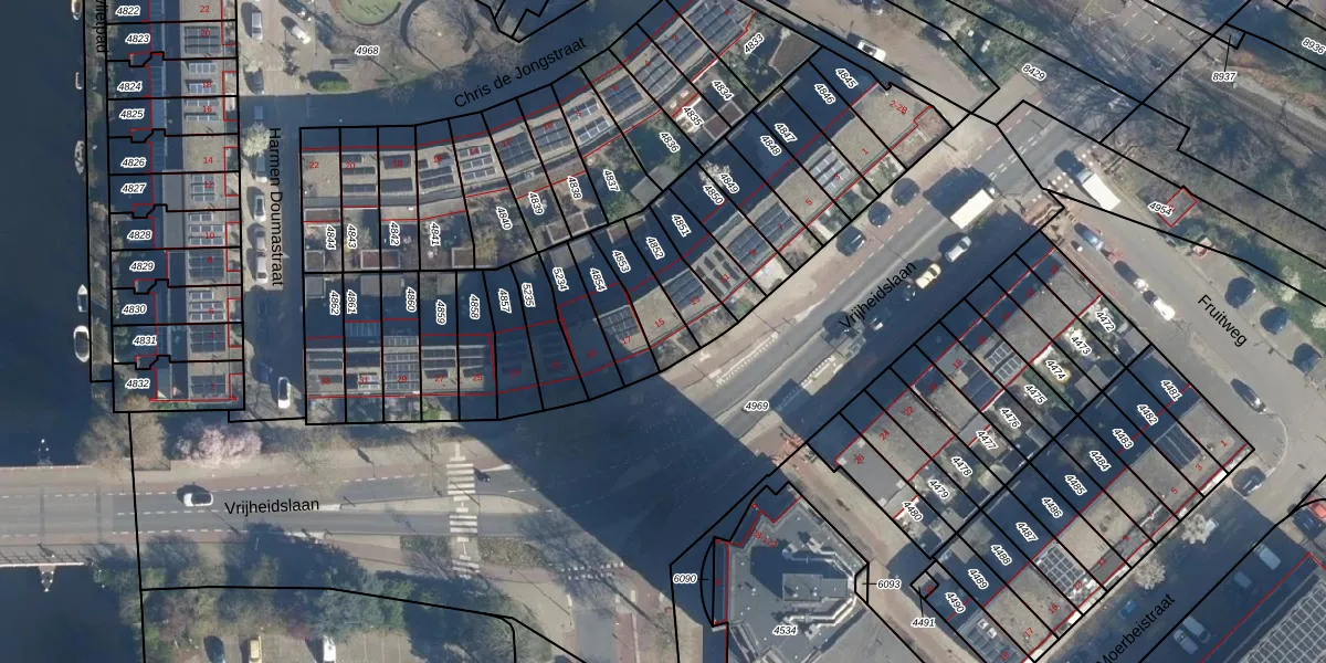 Vrijheidslaan 15 is gelegen op kadastraal perceel LDN01O4853. Deze kadastrale aanduiding is uniek en wordt gebruikt door het Kadaster om eigendomsrechten en andere zakelijke rechten vast te leggen. Het perceel maakt onderdeel uit van de kadastrale gemeente Leiden.