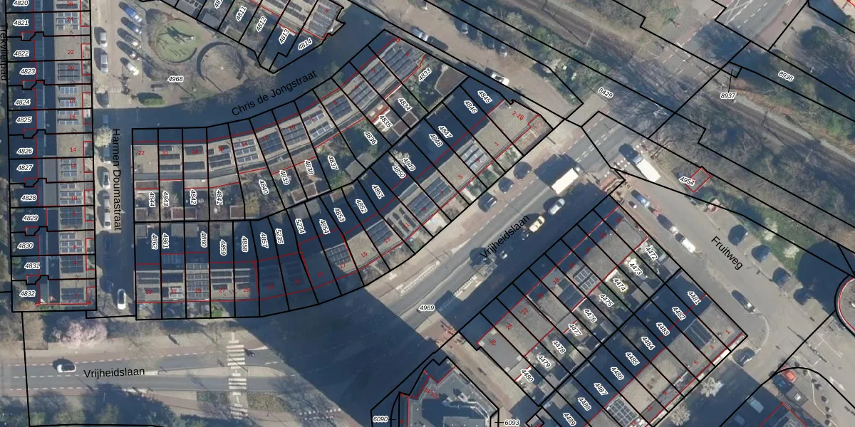 Vrijheidslaan 9 is gelegen op kadastraal perceel LDN01O4850. Deze kadastrale aanduiding is uniek en wordt gebruikt door het Kadaster om eigendomsrechten en andere zakelijke rechten vast te leggen. Het perceel maakt onderdeel uit van de kadastrale gemeente Leiden.