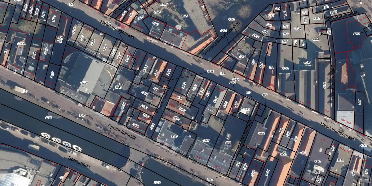 Het adres is gelegen op perceel 3451 in de sectie H en de kadastrale gemeente Leiden. De kadastrale aanduiding is aldus LDN01-H-3451. De gemiddelde perceelgrootte in Leiden is 704,03 m². Dit perceel is kleiner: de perceeloppervlakte bedraagt 103 m². De grootste perceeloppervlakte in de kadastrale gemeente is 51,8 ha. De kleinste oppervlakte bedraagt 0 m². Op het perceel zijn 7 adressen aanwezig. In de Basisregistratie Kadaster (BRK) werden de grenzen van het perceel geregistreerd op 06-02-1998.