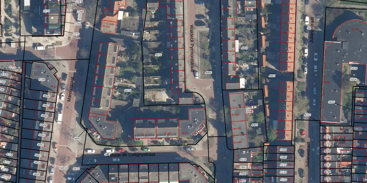 Waldeck Pyrmontstraat 21 is gelegen op kadastraal perceel LDN01K5676. Deze kadastrale aanduiding is uniek en wordt gebruikt door het Kadaster om eigendomsrechten en andere zakelijke rechten vast te leggen. Het perceel maakt onderdeel uit van de kadastrale gemeente Leiden.