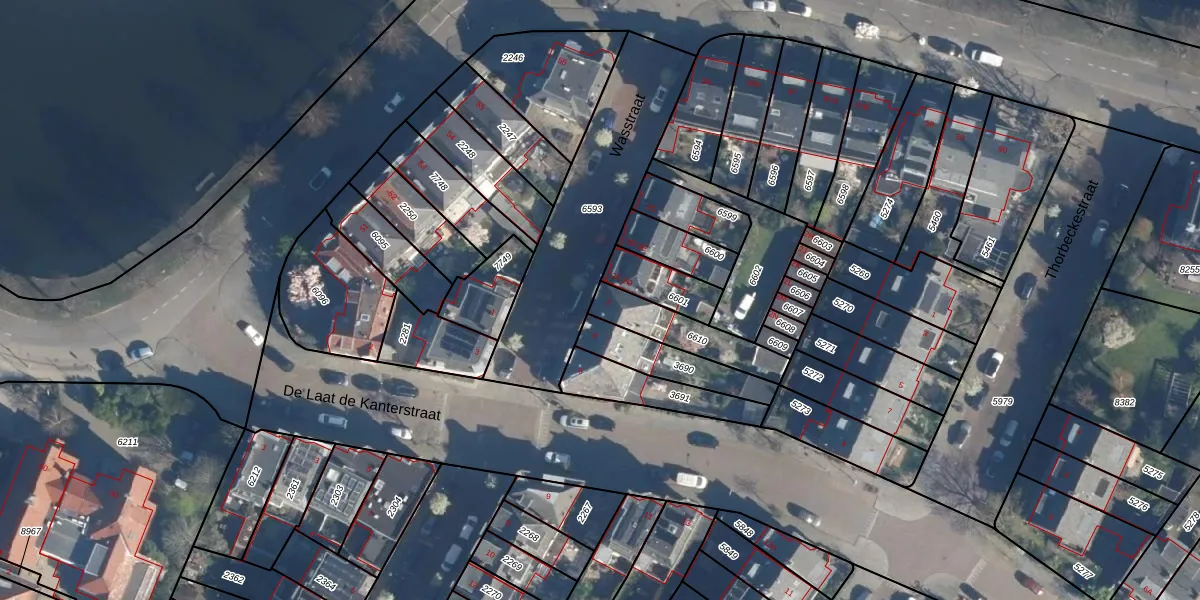 Gebruik de zoekbalk of klik op een perceel voor informatie over de adressen binnen dit perceel.