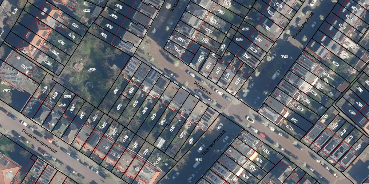 Gebruik de zoekbalk of klik op een perceel voor informatie over de adressen binnen dit perceel.