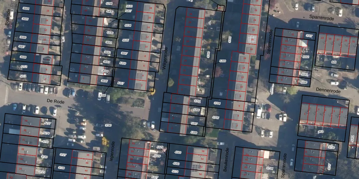 Wilgenrode 9 is gelegen op kadastraal perceel LDN01S3700. Deze kadastrale aanduiding is uniek en wordt gebruikt door het Kadaster om eigendomsrechten en andere zakelijke rechten vast te leggen. Het perceel maakt onderdeel uit van de kadastrale gemeente Leiden.