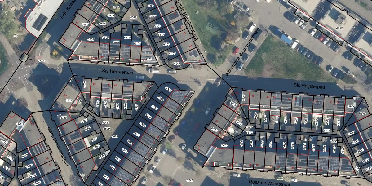 Wilhelmina Bladergroenweg 21 is gelegen op kadastraal perceel LDN01W6765. Deze kadastrale aanduiding is uniek en wordt gebruikt door het Kadaster om eigendomsrechten en andere zakelijke rechten vast te leggen. Het perceel maakt onderdeel uit van de kadastrale gemeente Leiden.