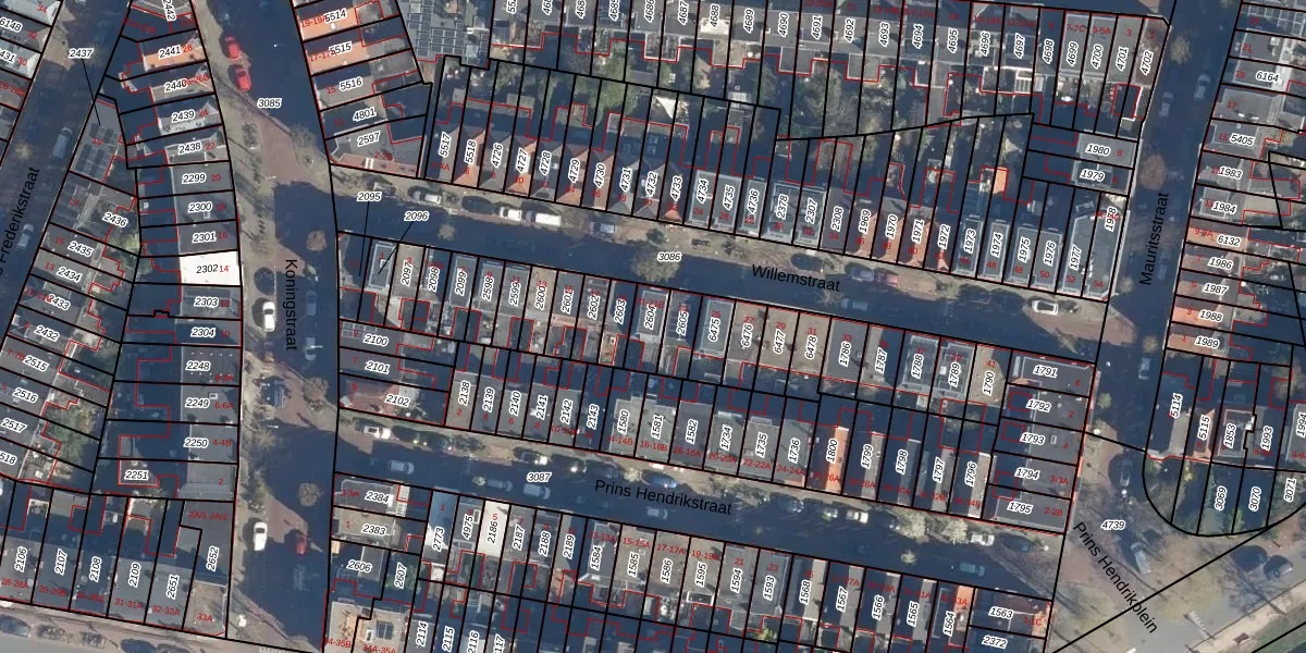 Het perceel waarop Willemstraat 21-A staat heeft een oppervlakte van 67 m². Dit is een klein perceel. De perceeloppervlakte wordt geregistreerd door het Kadaster. Gedetailleerde informatie over de maten van dit perceel kunt u vinden in het rapport Kadastrale kaart met maatvoering van Willemstraat 21-A.