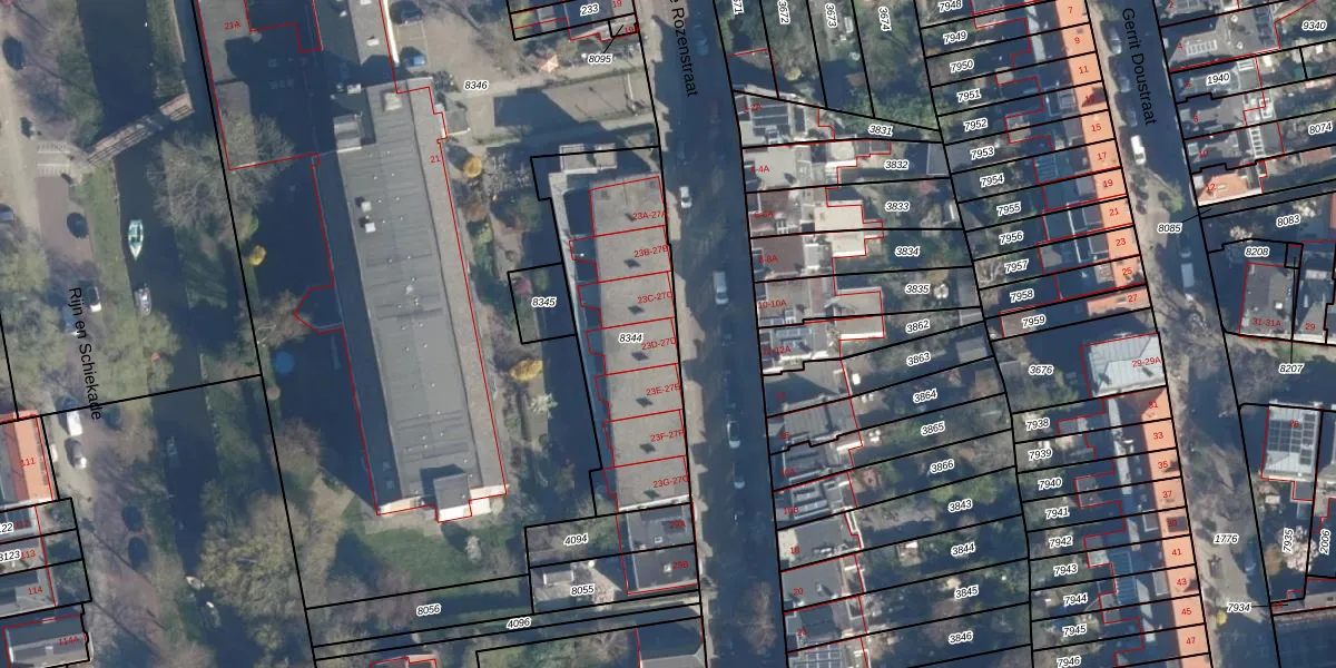 Witte Rozenstraat 27-D is gelegen op kadastraal perceel LDN01M8344. Deze kadastrale aanduiding is uniek en wordt gebruikt door het Kadaster om eigendomsrechten en andere zakelijke rechten vast te leggen. Het perceel maakt onderdeel uit van de kadastrale gemeente Leiden.