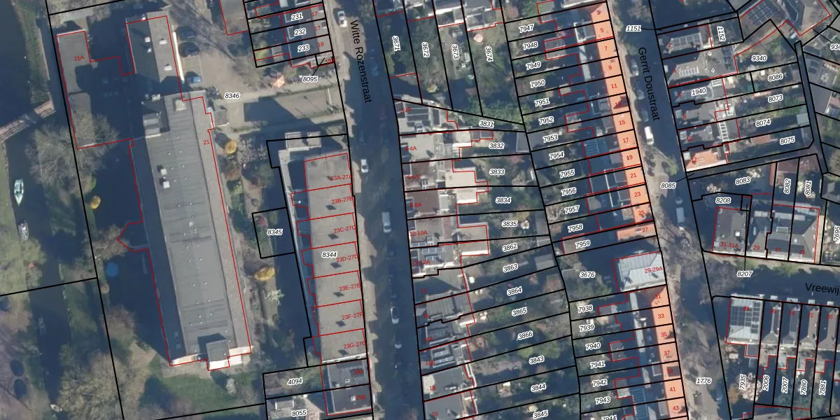 Het perceel waarop Witte Rozenstraat 8-A staat heeft een oppervlakte van 200 m². Dit is een middelgroot perceel. De perceeloppervlakte wordt geregistreerd door het Kadaster. Gedetailleerde informatie over de maten van dit perceel kunt u vinden in het rapport Kadastrale kaart met maatvoering van Witte Rozenstraat 8-A.