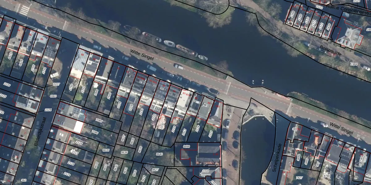 Witte Singel 97 is gelegen op kadastraal perceel LDN01M2233. Deze kadastrale aanduiding is uniek en wordt gebruikt door het Kadaster om eigendomsrechten en andere zakelijke rechten vast te leggen. Het perceel maakt onderdeel uit van de kadastrale gemeente Leiden.