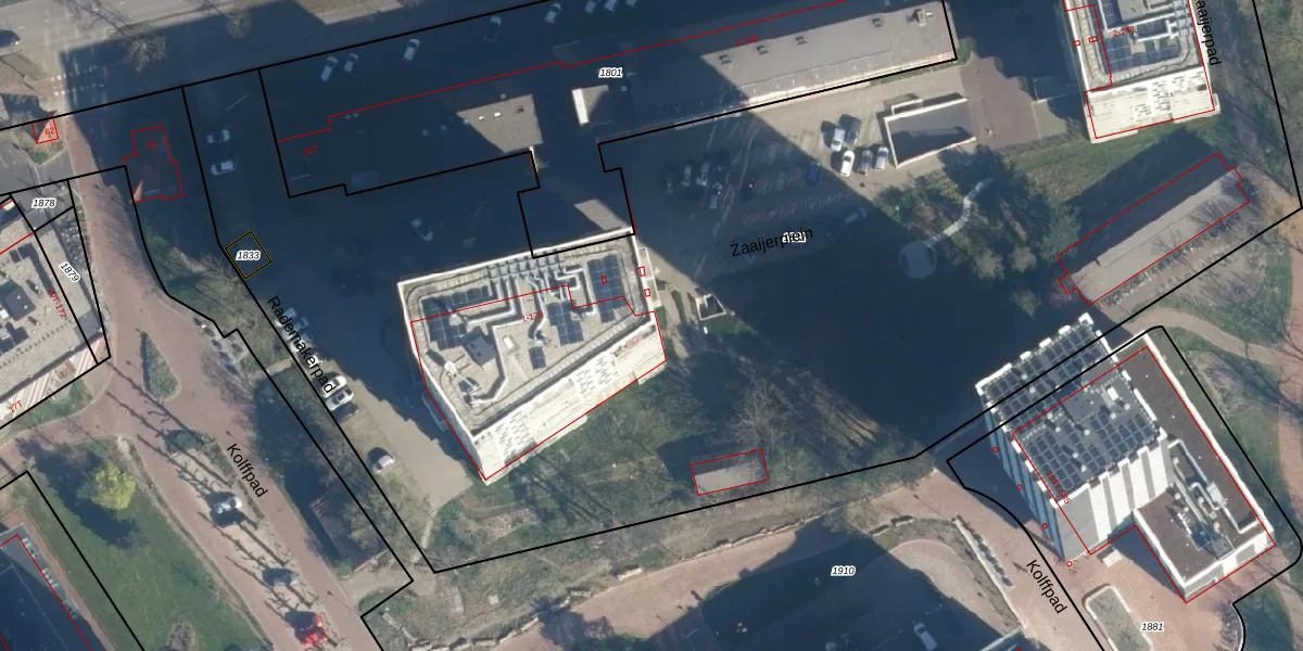 Zaaijerplein 7 is gelegen op kadastraal perceel LDN01R1832. Deze kadastrale aanduiding is uniek en wordt gebruikt door het Kadaster om eigendomsrechten en andere zakelijke rechten vast te leggen. Het perceel maakt onderdeel uit van de kadastrale gemeente Leiden.
