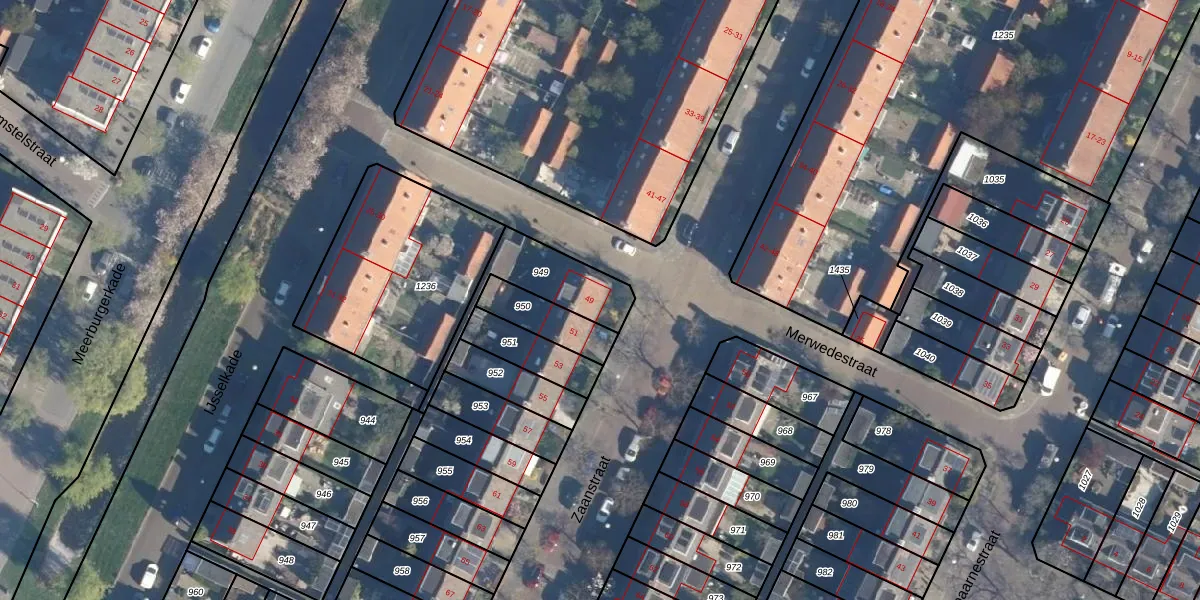 Gebruik de zoekbalk of klik op een perceel voor informatie over de adressen binnen dit perceel.