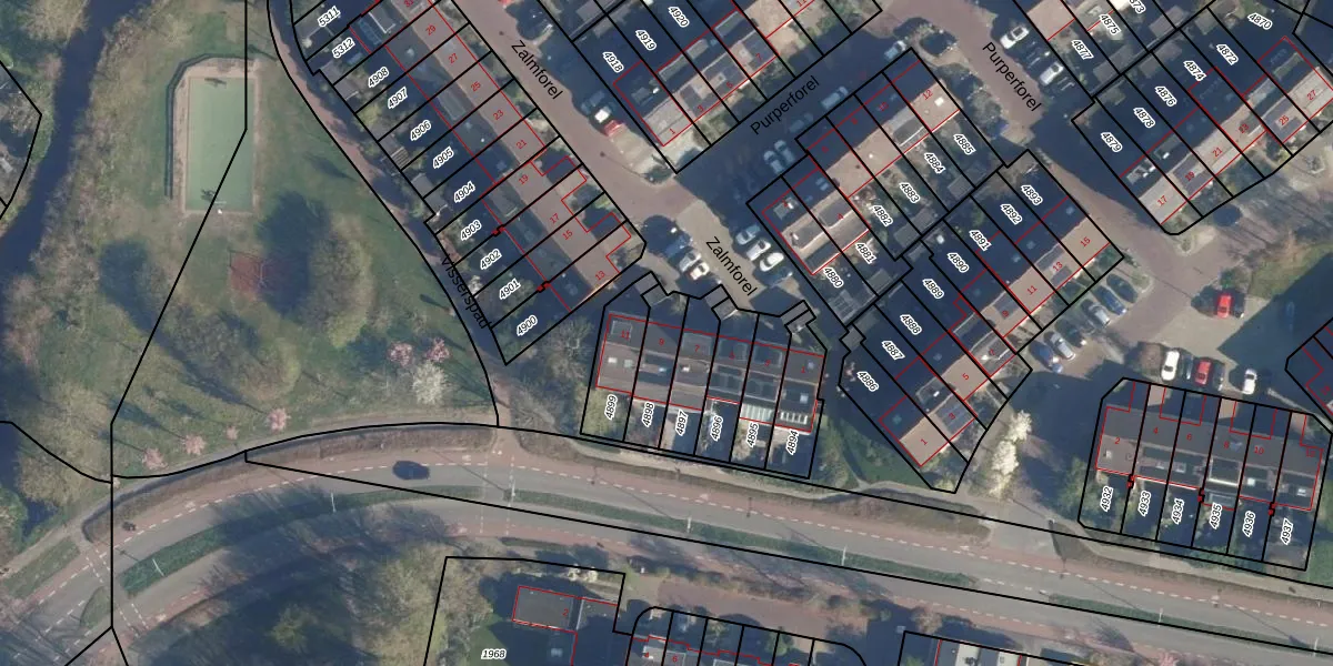 Gebruik de zoekbalk of klik op een perceel voor informatie over de adressen binnen dit perceel.