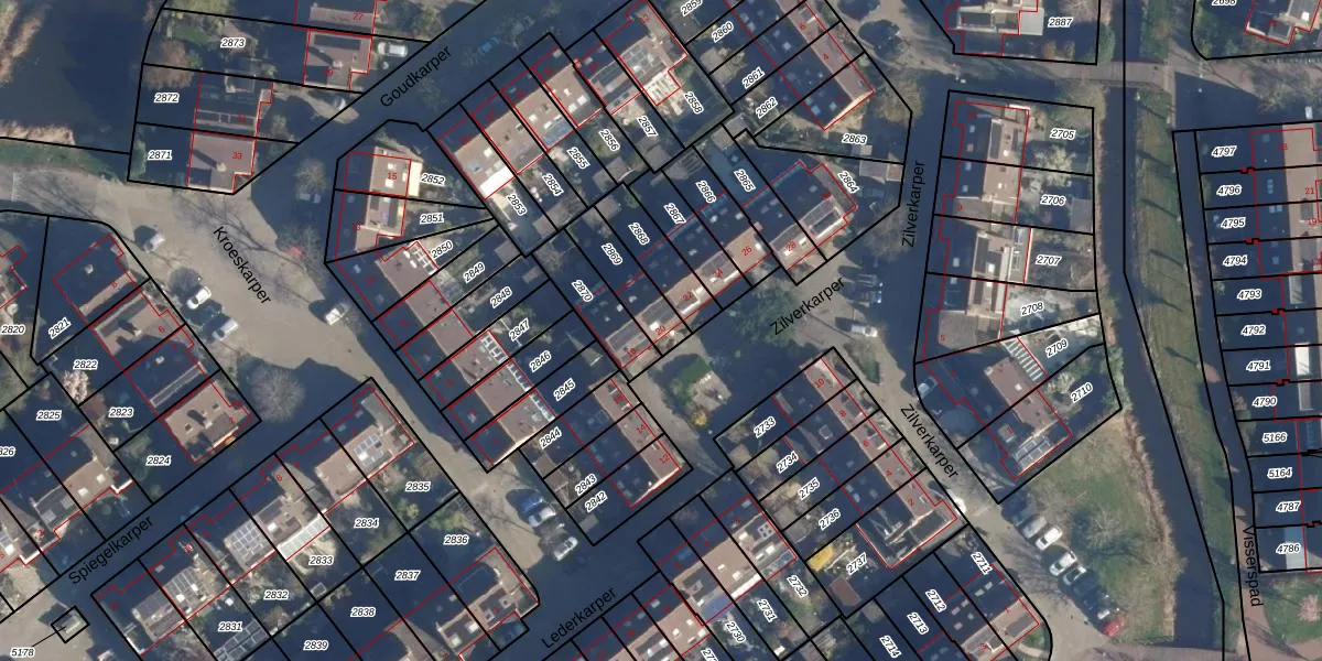 Zilverkarper 20 is gelegen op kadastraal perceel LDN01S2869. Deze kadastrale aanduiding is uniek en wordt gebruikt door het Kadaster om eigendomsrechten en andere zakelijke rechten vast te leggen. Het perceel maakt onderdeel uit van de kadastrale gemeente Leiden.