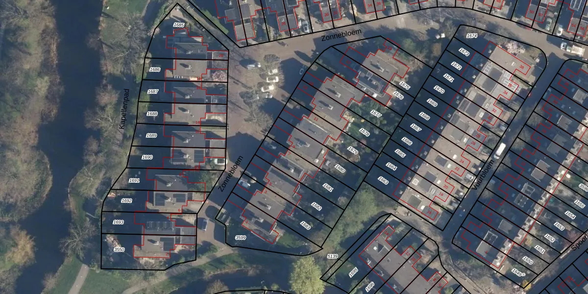 Het perceel waarop Zonnebloem 9 staat heeft een oppervlakte van 265 m². Dit is een middelgroot perceel. De perceeloppervlakte wordt geregistreerd door het Kadaster. Gedetailleerde informatie over de maten van dit perceel kunt u vinden in het rapport Kadastrale kaart met maatvoering van Zonnebloem 9.