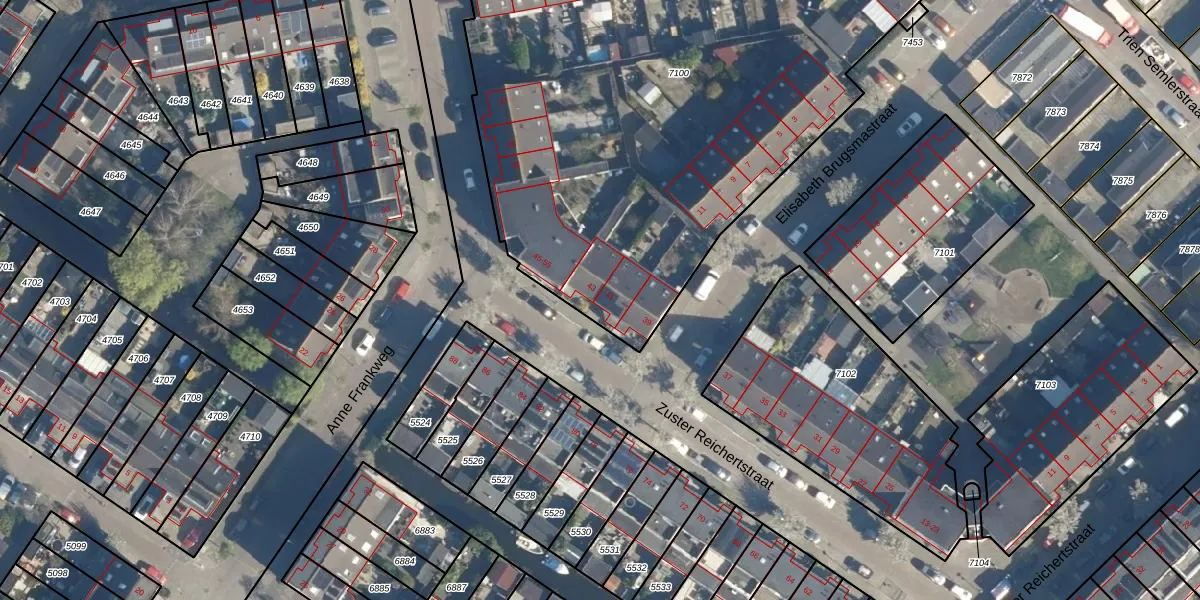 Het perceel waarop Zuster Reichertstraat 41 staat heeft een oppervlakte van 3775 m². Dit is een zeer groot perceel. De perceeloppervlakte wordt geregistreerd door het Kadaster. Gedetailleerde informatie over de maten van dit perceel kunt u vinden in het rapport Kadastrale kaart met maatvoering van Zuster Reichertstraat 41.