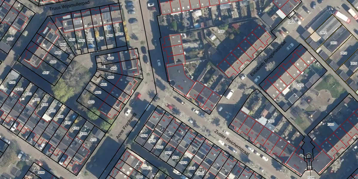 Zuster Reichertstraat 45 is gelegen op kadastraal perceel LDN01W7100. Deze kadastrale aanduiding is uniek en wordt gebruikt door het Kadaster om eigendomsrechten en andere zakelijke rechten vast te leggen. Het perceel maakt onderdeel uit van de kadastrale gemeente Leiden.