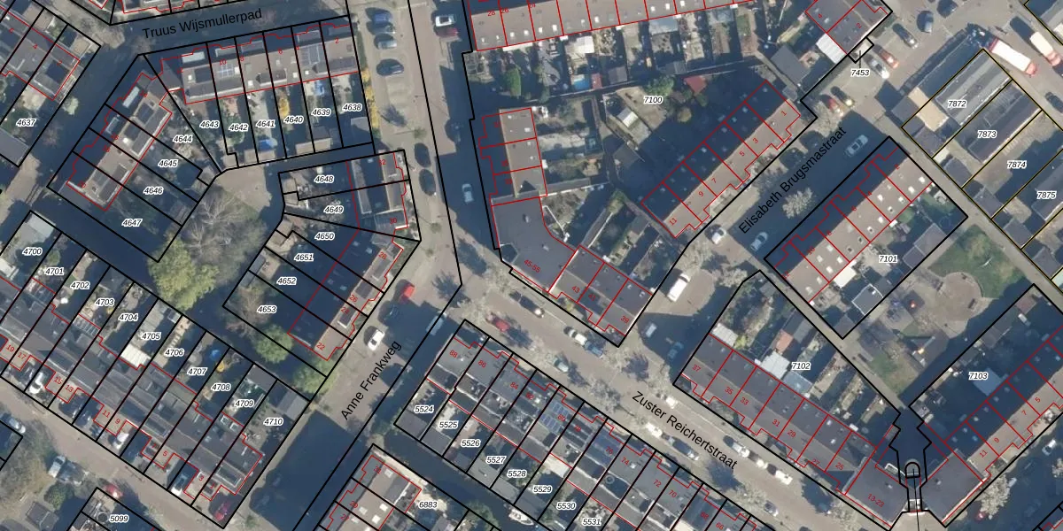 Zuster Reichertstraat 49 is gelegen op kadastraal perceel LDN01W7100. Deze kadastrale aanduiding is uniek en wordt gebruikt door het Kadaster om eigendomsrechten en andere zakelijke rechten vast te leggen. Het perceel maakt onderdeel uit van de kadastrale gemeente Leiden.