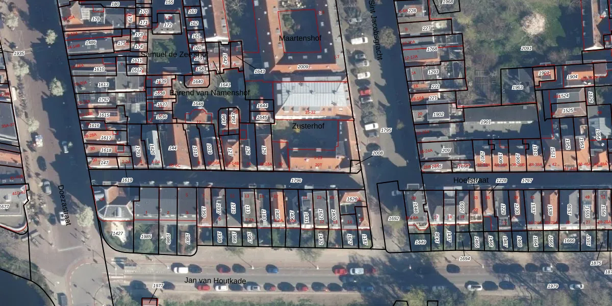 Zusterhof 12 is gelegen op kadastraal perceel LDN01E2009. Deze kadastrale aanduiding is uniek en wordt gebruikt door het Kadaster om eigendomsrechten en andere zakelijke rechten vast te leggen. Het perceel maakt onderdeel uit van de kadastrale gemeente Leiden.
