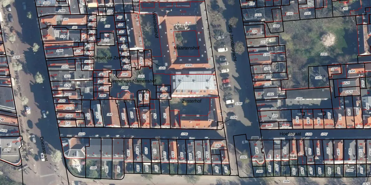 Zusterhof 19 is gelegen op kadastraal perceel LDN01E2009. Deze kadastrale aanduiding is uniek en wordt gebruikt door het Kadaster om eigendomsrechten en andere zakelijke rechten vast te leggen. Het perceel maakt onderdeel uit van de kadastrale gemeente Leiden.