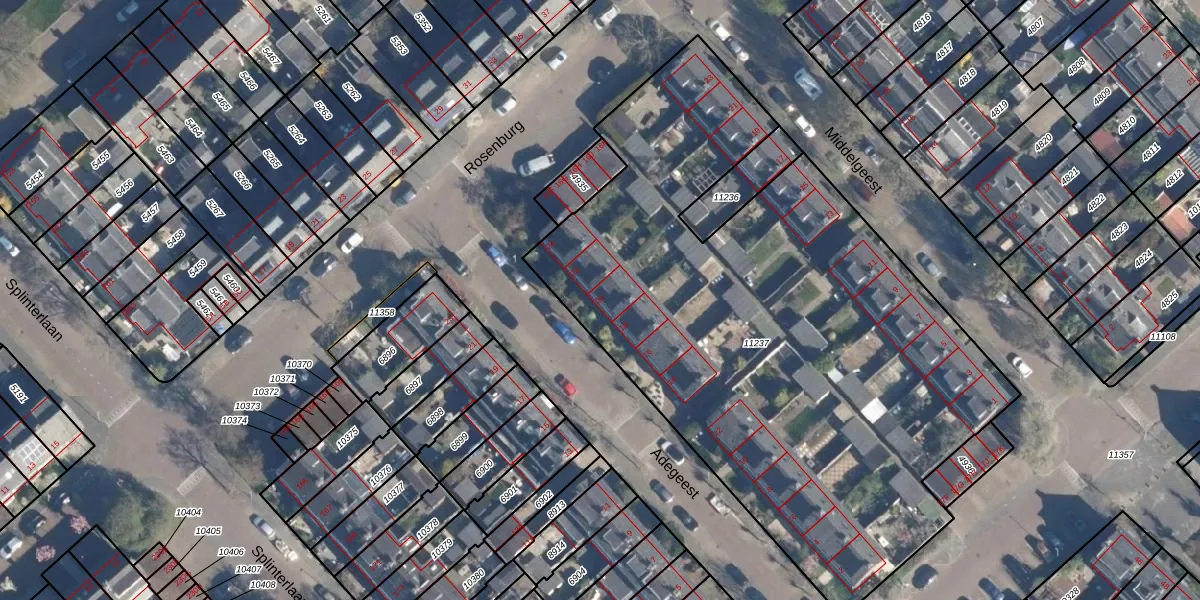 Het perceel waarop Adegeest 20 staat heeft een oppervlakte van 3625 m². Dit is een zeer groot perceel. De perceeloppervlakte wordt geregistreerd door het Kadaster. Gedetailleerde informatie over de maten van dit perceel kunt u vinden in het rapport Kadastrale kaart met maatvoering van Adegeest 20.