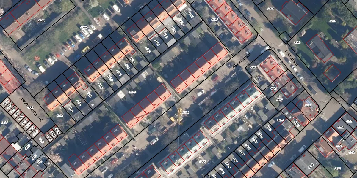 Het perceel waarop Akkerstraat 23 staat heeft een oppervlakte van 3110 m². Dit is een zeer groot perceel. De perceeloppervlakte wordt geregistreerd door het Kadaster. Gedetailleerde informatie over de maten van dit perceel kunt u vinden in het rapport Kadastrale kaart met maatvoering van Akkerstraat 23.