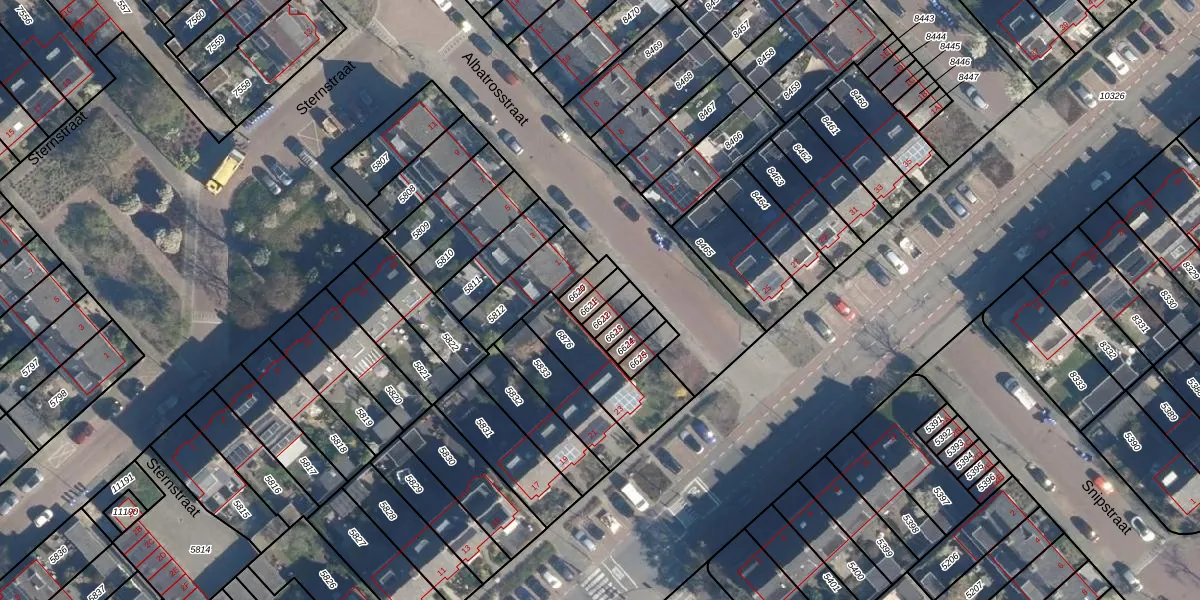 Het perceel waarop Albatrosstraat 1-E staat heeft een oppervlakte van 33 m². Dit is een klein perceel. De perceeloppervlakte wordt geregistreerd door het Kadaster. Gedetailleerde informatie over de maten van dit perceel kunt u vinden in het rapport Kadastrale kaart met maatvoering van Albatrosstraat 1-E.