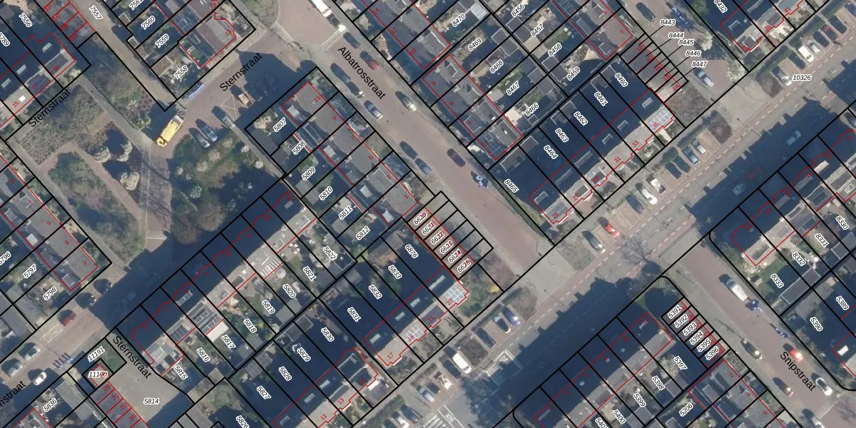Gebruik de zoekbalk of klik op een perceel voor informatie over de adressen binnen dit perceel.