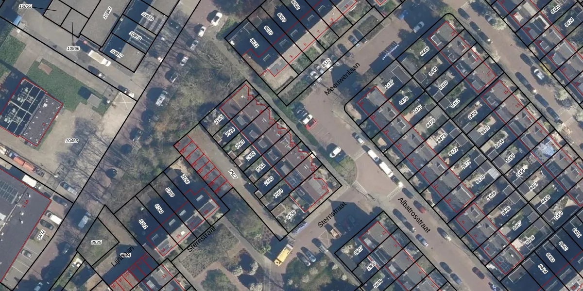 Het perceel waarop Albatrosstraat 19 staat heeft een oppervlakte van 121 m². Dit is een middelgroot perceel. De perceeloppervlakte wordt geregistreerd door het Kadaster. Gedetailleerde informatie over de maten van dit perceel kunt u vinden in het rapport Kadastrale kaart met maatvoering van Albatrosstraat 19.