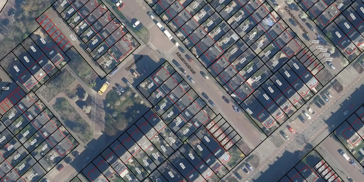 Albatrosstraat 7 is gelegen op kadastraal perceel LDD00A5809. Deze kadastrale aanduiding is uniek en wordt gebruikt door het Kadaster om eigendomsrechten en andere zakelijke rechten vast te leggen. Het perceel maakt onderdeel uit van de kadastrale gemeente Leiderdorp.