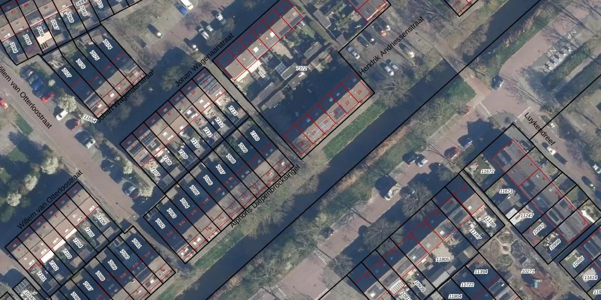 Het adres ligt op het perceel LDD00-A-7372, dat zich in de kadastrale gemeente Leiderdorp bevindt. Het perceel is met 2569 m² relatief groot. Het gemiddelde ligt in de kadastrale gemeente Leiderdorp op 1285,95 m². Het grootste perceel in de kadastrale gemeente is 43,4 ha. Het kleinste perceel heeft een oppervlakte van 0 m². Op het perceel liggen in totaal 21 adressen. De laatste wijziging in het de Basisregistratie Kadaster (BRK) was op 16-12-2008.