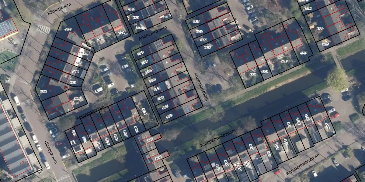 Gebruik de zoekbalk of klik op een perceel voor informatie over de adressen binnen dit perceel.