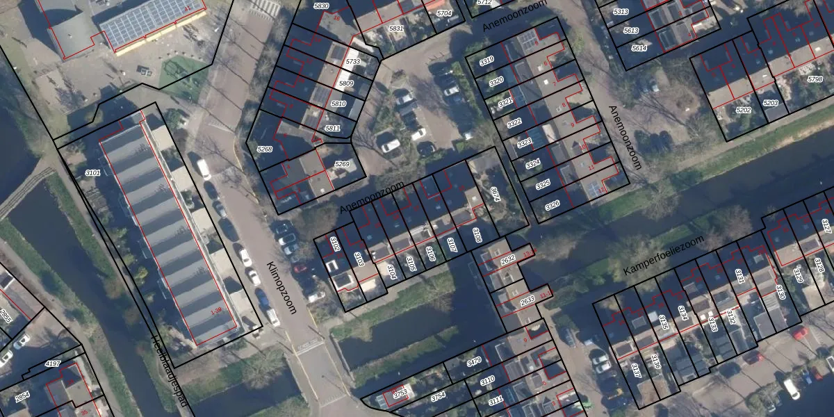 Gebruik de zoekbalk of klik op een perceel voor informatie over de adressen binnen dit perceel.