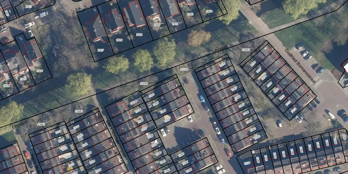 Gebruik de zoekbalk of klik op een perceel voor informatie over de adressen binnen dit perceel.