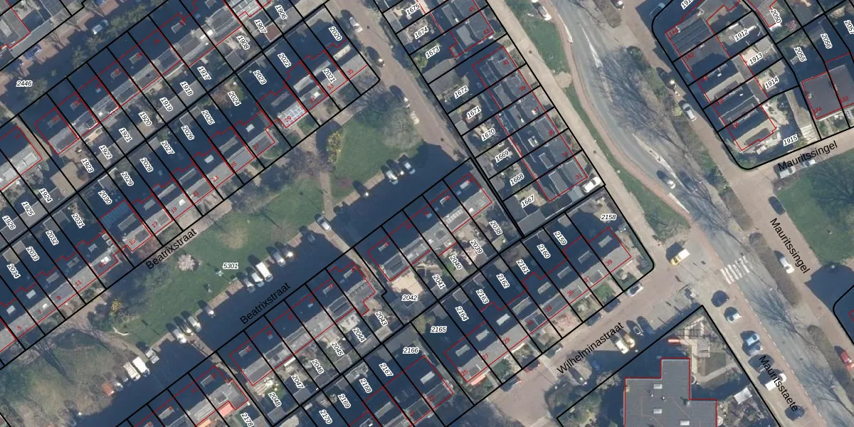 Gebruik de zoekbalk of klik op een perceel voor informatie over de adressen binnen dit perceel.