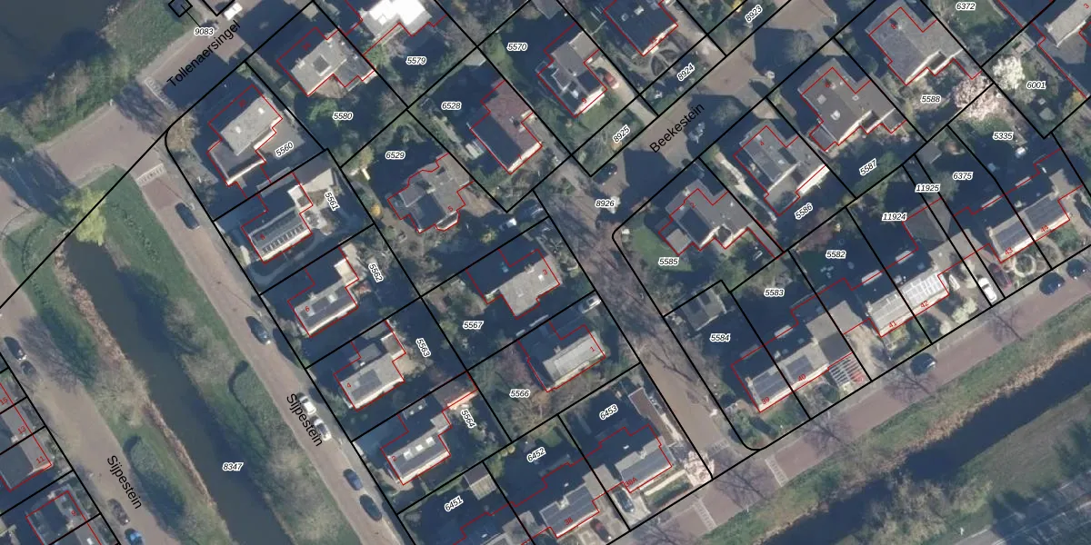 Gebruik de zoekbalk of klik op een perceel voor informatie over de adressen binnen dit perceel.