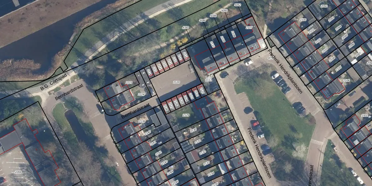 Bernhardstraat 20-E is gelegen op kadastraal perceel LDD00B2124. Deze kadastrale aanduiding is uniek en wordt gebruikt door het Kadaster om eigendomsrechten en andere zakelijke rechten vast te leggen. Het perceel maakt onderdeel uit van de kadastrale gemeente Leiderdorp.