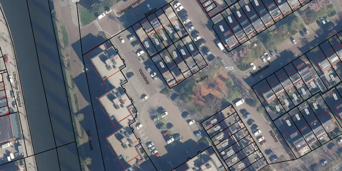 Gebruik de zoekbalk of klik op een perceel voor informatie over de adressen binnen dit perceel.