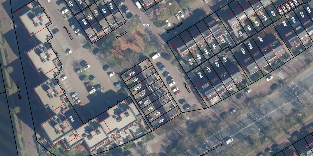 Het perceel waarop Bijdorp 6 staat heeft een oppervlakte van 107 m². Dit is een middelgroot perceel. De perceeloppervlakte wordt geregistreerd door het Kadaster. Gedetailleerde informatie over de maten van dit perceel kunt u vinden in het rapport Kadastrale kaart met maatvoering van Bijdorp 6.