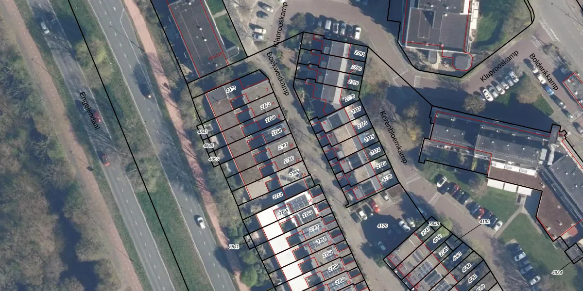 Gebruik de zoekbalk of klik op een perceel voor informatie over de adressen binnen dit perceel.