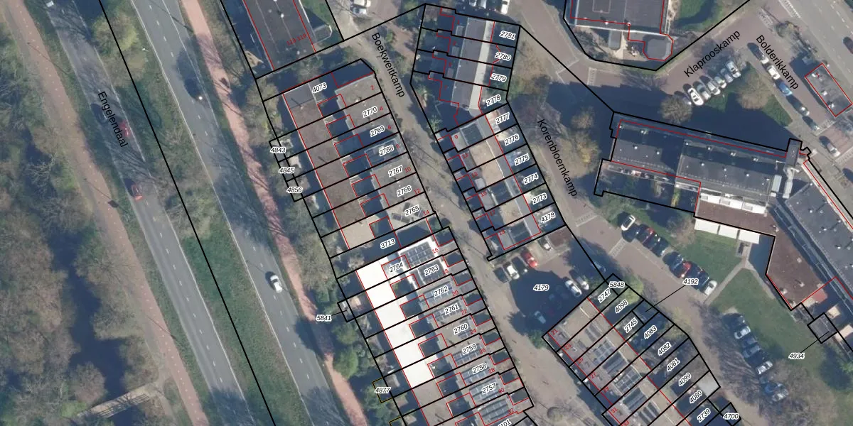 Gebruik de zoekbalk of klik op een perceel voor informatie over de adressen binnen dit perceel.