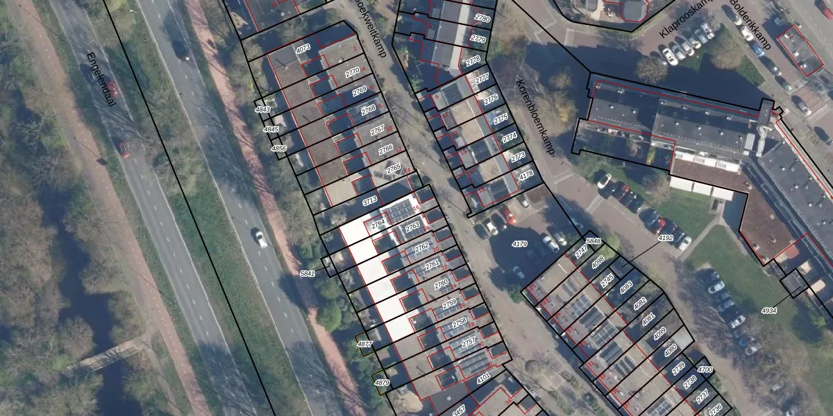 Gebruik de zoekbalk of klik op een perceel voor informatie over de adressen binnen dit perceel.