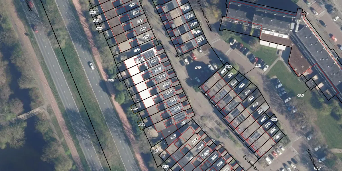 Gebruik de zoekbalk of klik op een perceel voor informatie over de adressen binnen dit perceel.