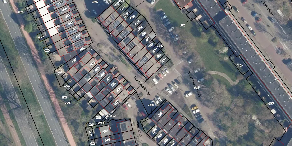 Boekweitkamp 43 is gelegen op kadastraal perceel LDD00B2736. Deze kadastrale aanduiding is uniek en wordt gebruikt door het Kadaster om eigendomsrechten en andere zakelijke rechten vast te leggen. Het perceel maakt onderdeel uit van de kadastrale gemeente Leiderdorp.