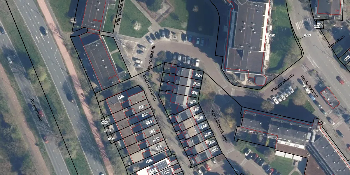 Gebruik de zoekbalk of klik op een perceel voor informatie over de adressen binnen dit perceel.