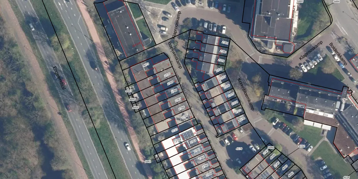 Gebruik de zoekbalk of klik op een perceel voor informatie over de adressen binnen dit perceel.