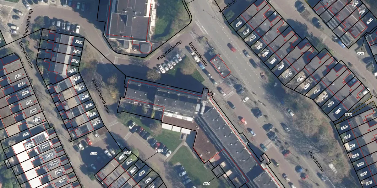 Het perceel waarop Bolderikkamp 12 staat heeft een oppervlakte van 4596 m². Dit is een zeer groot perceel. De perceeloppervlakte wordt geregistreerd door het Kadaster. Gedetailleerde informatie over de maten van dit perceel kunt u vinden in het rapport Kadastrale kaart met maatvoering van Bolderikkamp 12.