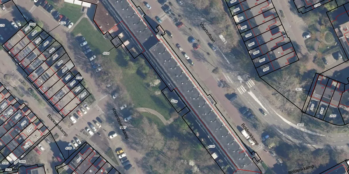 Het perceel waarop Bolderikkamp 128 staat heeft een oppervlakte van 4596 m². Dit is een zeer groot perceel. De perceeloppervlakte wordt geregistreerd door het Kadaster. Gedetailleerde informatie over de maten van dit perceel kunt u vinden in het rapport Kadastrale kaart met maatvoering van Bolderikkamp 128.