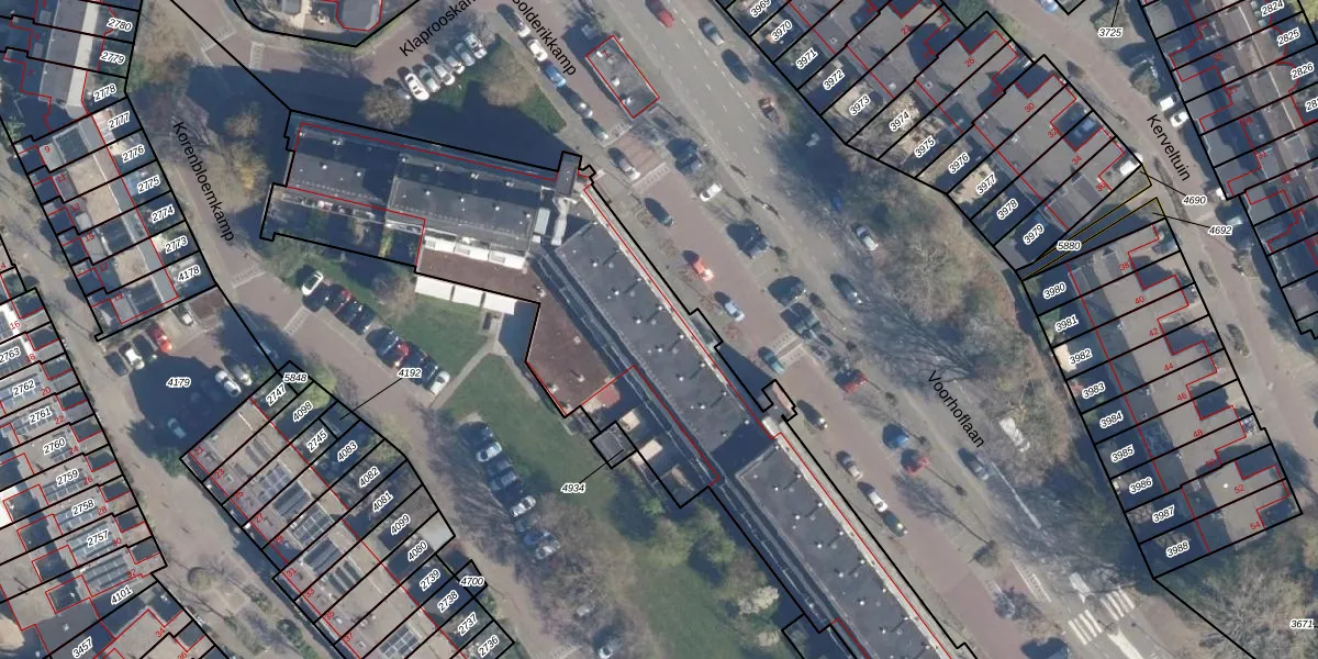 Het adres is gelegen op perceel 4158 in de sectie B en de kadastrale gemeente Leiderdorp. De kadastrale aanduiding is aldus LDD00-B-4158. Het perceel is met 4596 m² relatief groot. Het gemiddelde ligt in de kadastrale gemeente Leiderdorp op 1290,14 m². Het kleinste perceel in de kadastrale gemeente is 0 m² groot. De grootste perceeloppervlakte is 43,4 ha. Op het perceel zijn 107 adressen aanwezig. De huidige grenzen van het perceel zijn digitaal in de Basisregistratie Kadaster (BRK) geregistreerd op 21-09-2017.