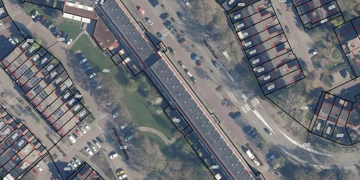 Het perceel waarop Bolderikkamp 78 staat heeft een oppervlakte van 4596 m². Dit is een zeer groot perceel. De perceeloppervlakte wordt geregistreerd door het Kadaster. Gedetailleerde informatie over de maten van dit perceel kunt u vinden in het rapport Kadastrale kaart met maatvoering van Bolderikkamp 78.