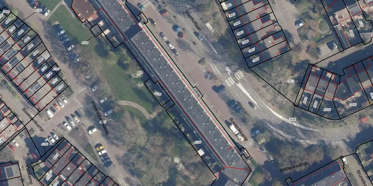 Het perceel waarop Bolderikkamp 86 staat heeft een oppervlakte van 4596 m². Dit is een zeer groot perceel. De perceeloppervlakte wordt geregistreerd door het Kadaster. Gedetailleerde informatie over de maten van dit perceel kunt u vinden in het rapport Kadastrale kaart met maatvoering van Bolderikkamp 86.